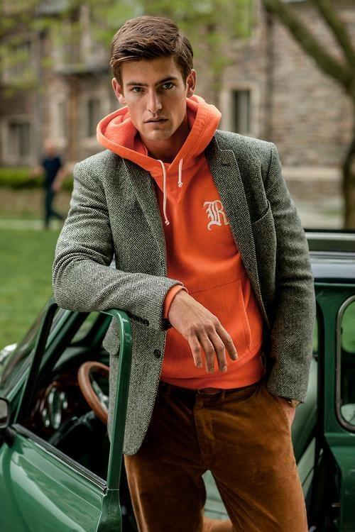 メンズファッション Twitter પર オレンジパーカー ジャケットのコーデ ツイードジャケットのインナーに鮮やかなオレンジ色のパーカーが映えます T Co Qcgfhkfnbp